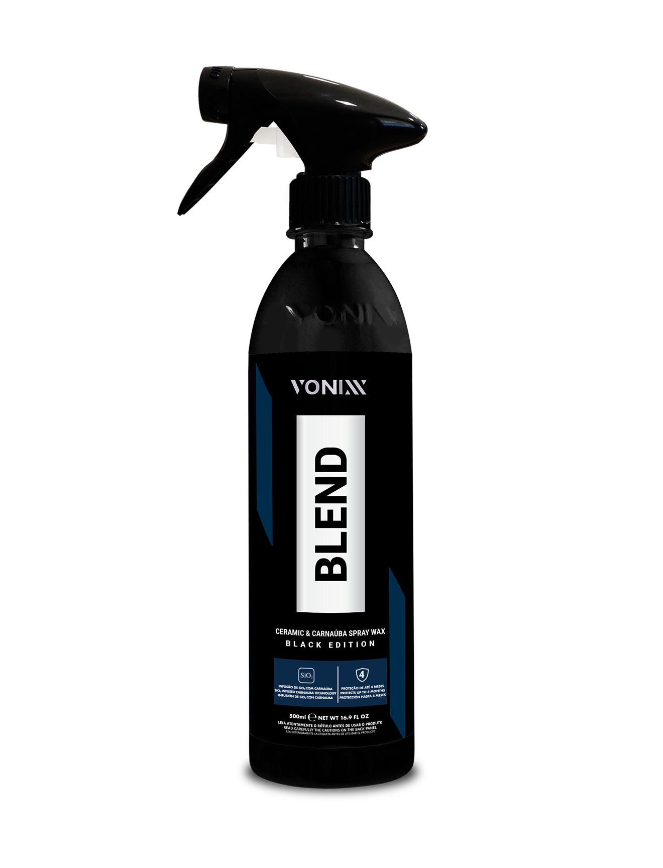 Blend Ceramic & Carnaúba Spray Wax Black Edition is a hybrid wax, composed of SiO 2 and the purest type 1 carnauba that protects the vehicle surface for up to four months, especially dark paintwork. The product promotes ceramic resistance, warm carnauba shine and water repellency.